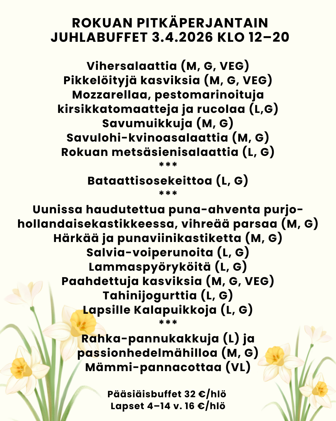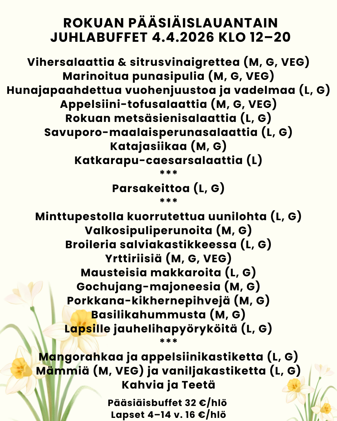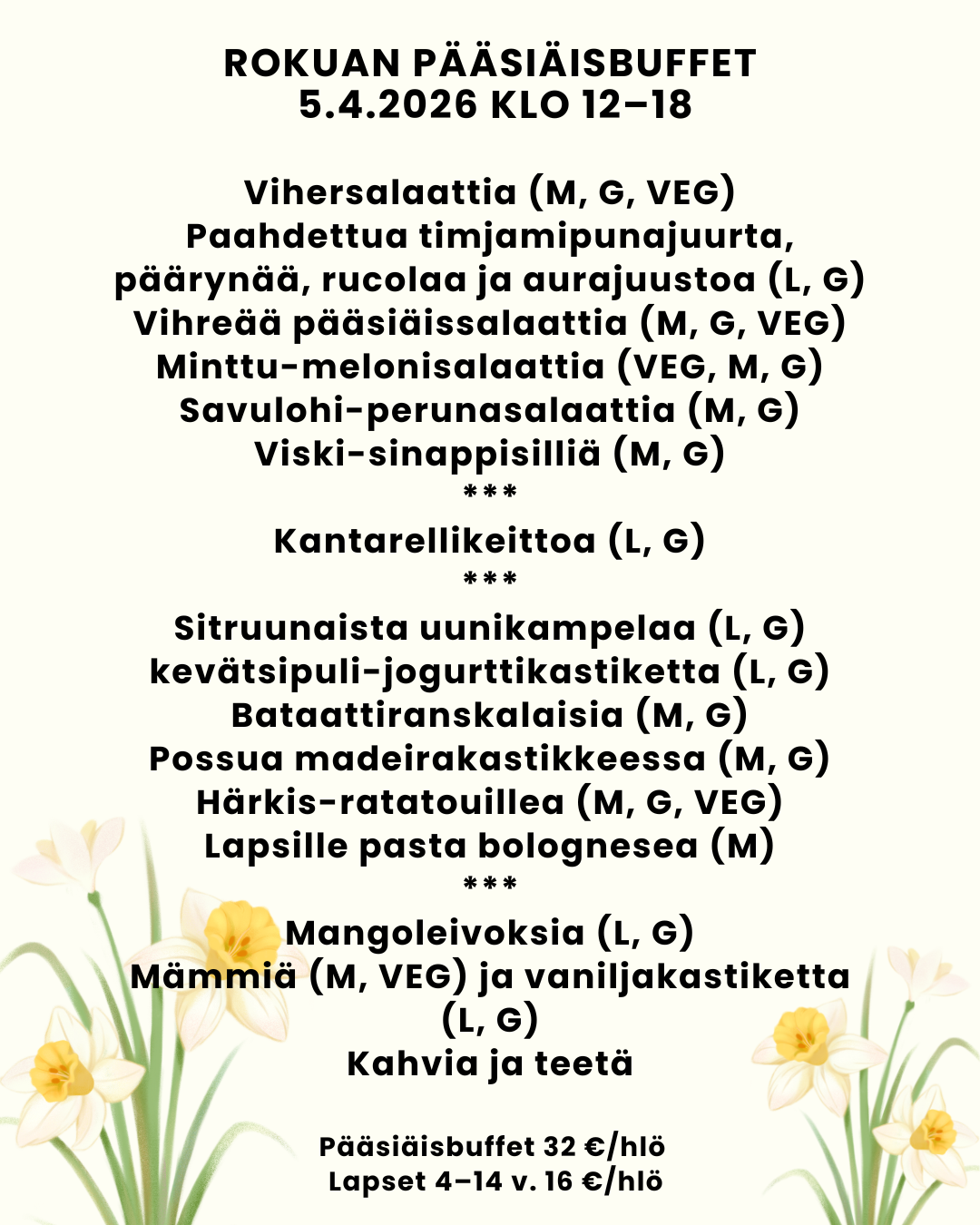 Pääsiäisbuffet 2. pääsiäispäivänä 6.4.